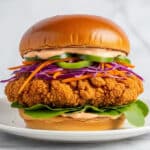 This Thai Fried Chicken Sandwich is a delicious fusion of crispy, flavorful chicken and fresh, spicy toppings. Marinated in coconut milk and curry, then fried to golden perfection, it’s a vibrant twist on a classic favorite perfect for any meal.