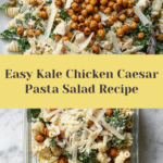 This Kale Chicken Caesar Pasta Salad combines hearty fusilli pasta with tender grilled chicken, crispy roasted chickpeas, and fresh kale, all tossed in a creamy Greek yogurt Caesar dressing. It’s a delicious, protein-packed salad perfect for lunch or a light dinner.