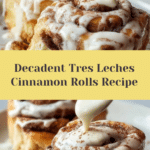 These Tres Leches Cinnamon Rolls combine the classic comforting flavors of cinnamon-spiced rolls with a rich tres leches milk soak. Soft and fluffy yeast dough is rolled with buttery cinnamon sugar, baked to golden perfection, then drenched in a luscious mixture of evaporated milk, sweetened condensed milk, and heavy cream. Topped with whipped cream, a dusting of cinnamon, and optional chopped nuts, these rolls offer an indulgent twist on traditional cinnamon rolls with a creamy, moist finish inspired by the beloved tres leches dessert.