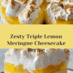 Triple Lemon Meringue Cheesecake is a bright and tangy dessert layered with creamy cheesecake, zesty lemon curd, and a fluffy golden meringue topping. This elegant treat combines rich textures and vibrant citrus flavors that are perfect for any occasion.