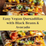 These Vegan Quesadillas with Black Beans and Avocado are a quick, healthy, and delicious plant-based meal. Featuring creamy mashed avocado blended with black beans, corn, and vibrant spices, these quesadillas offer a perfect balance of flavor and nutrition. Perfect for lunch or a light dinner, they are easy to prepare using whole wheat or gluten-free tortillas and cooked to a golden crisp on the stovetop.