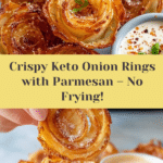 Keywords: keto onion rings, low carb snack, baked onion rings, high protein snack, parmesan crusted onion rings, no frying onion rings