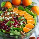 This Winter Salad is a refreshing and vibrant mix of crisp greens, juicy citrus, and tangy pomegranate seeds, topped with creamy feta and crunchy candied pecans. It’s perfectly balanced with a sweet and tangy dressing that brightens up any meal during the colder months.